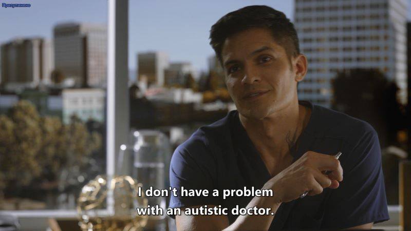 У парня практически идеальная память (almost perfect recall) и он является прекрасным диагностиком (excellent diagnostician). Это с одной стороны помогает ему в работе, а с другой — создает проблемы (issues), в частности в общении (communication limitations) с коллегами и пациентами (patients). Например, Шон не умеет врать (to lie, to deceive, to mislead) и не понимает сарказма (sarcasm, quip, snark, being sarcastic).